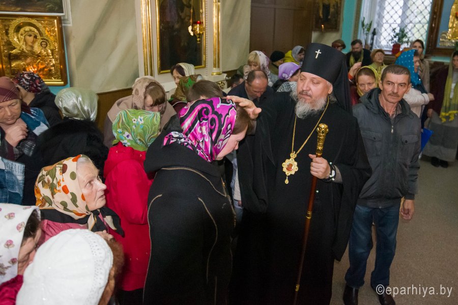 Высокопреосвященнейшему сослужили: секретарь Гомельской епархии протоиерей Георгий Алампиев и духовенство собора.